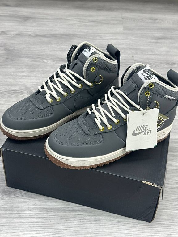 Nike Air Force 1 Duckboot Anthracite Gum — Утеплённые кроссовки с прорезиненным носом и подошвой цвета gum для максимальной защиты от влаги и грязи. Прочный верх и характерный силуэт придают модели брутальный, внедорожный стиль.