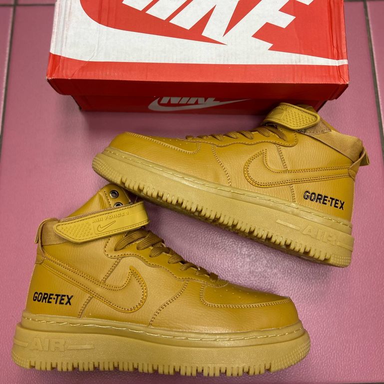 Nike Air Force 1 Gore Tex High Beige с мехом - утепленная водонепроницаемая версия в бежевом цвете. Высокий профиль с технологией Gore-Tex, меховой подкладкой и защитными элементами обеспечивает максимальный комфорт в холодную и влажную погоду.