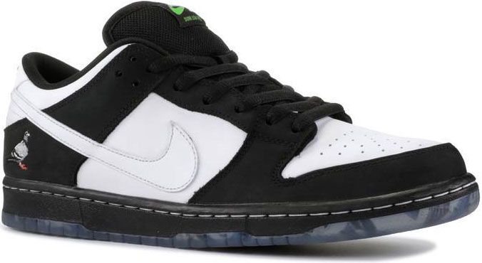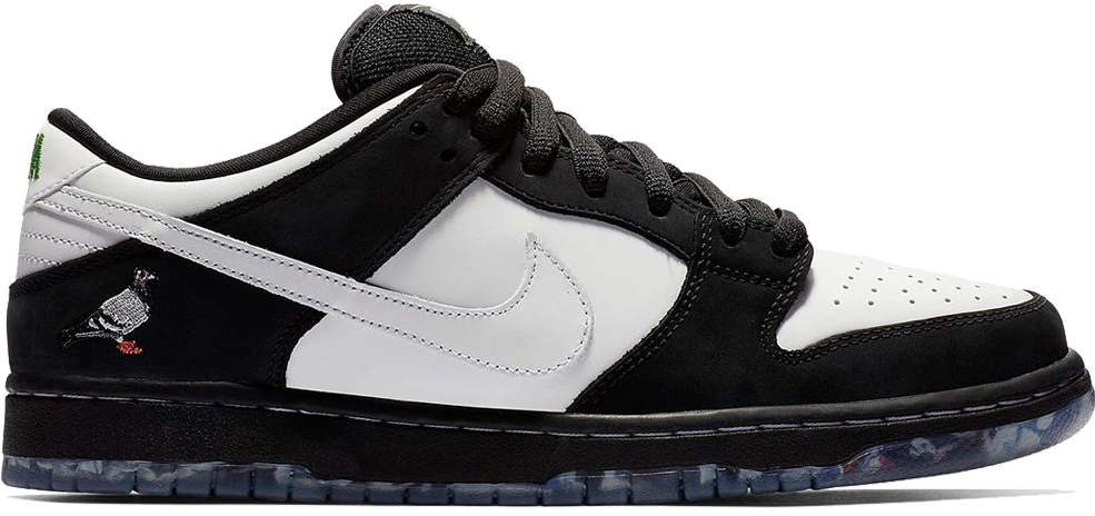 Nike Air Force 1 x Jeff Staple SB Dunk Low 'Panda Pigeon' - коллаборационная модель, объединяющая классику AF1 и дизайн Джеффа Стейпла. Черно-белая цветовая схема с акцентами голубого создает образ панды-голубя, а платформа SB обеспечивает идеальный контроль при катании.