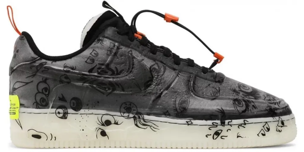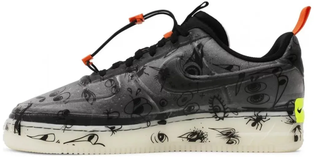 Nike Air Force 1 Experimental — еще одна модель, которая вошла в тематическую коллекцию «Halloween Pack» 2021 года в преддверии Хэллоуина. Кроссовки выполнены в черной и белой расцветке и отличаются принтом в виде разнообразных глаз. Также в темноте светится весь верх и подошва.