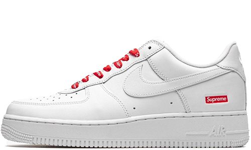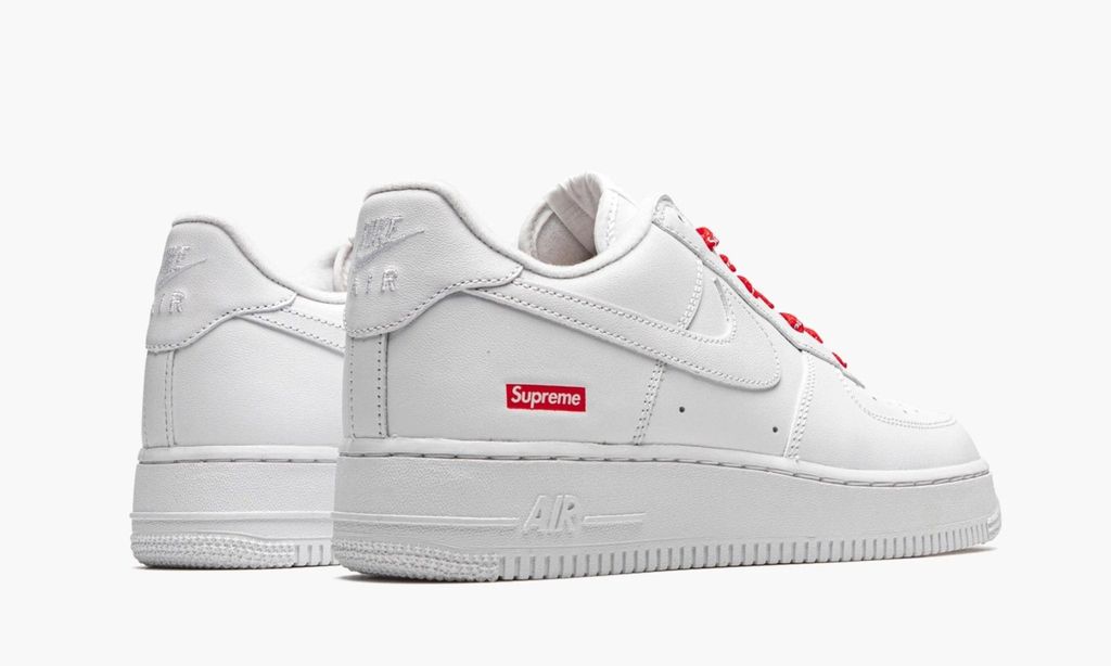 Nike Air Force 1 Low x Supreme "White" — минималистичная коллаборация, выпущенная в марте 2020 года. Кроссовки выполнены из белой кожи с красным бокс-логотипом Supreme на пятке, дополнительными красными шнурками и фирменной стелькой. Модель сочетает в себе классический силуэт с уличной эстетикой