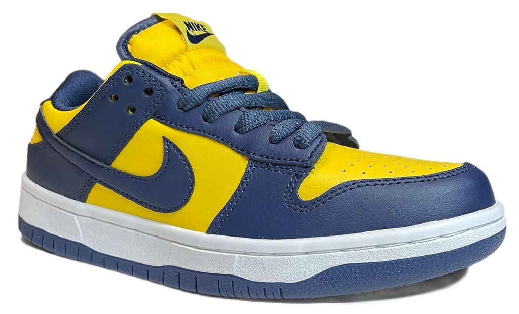 Nike SB Dunk Low Michigan - яркая интерпретация классических данков в цветах университета Мичиган. Контрастное сочетание синего и желтого создает узнаваемый образ колледжа, а проверенная платформа SB обеспечивает комфорт для скейтбординга.