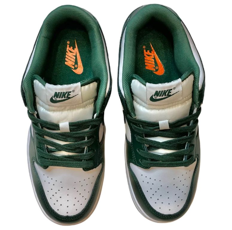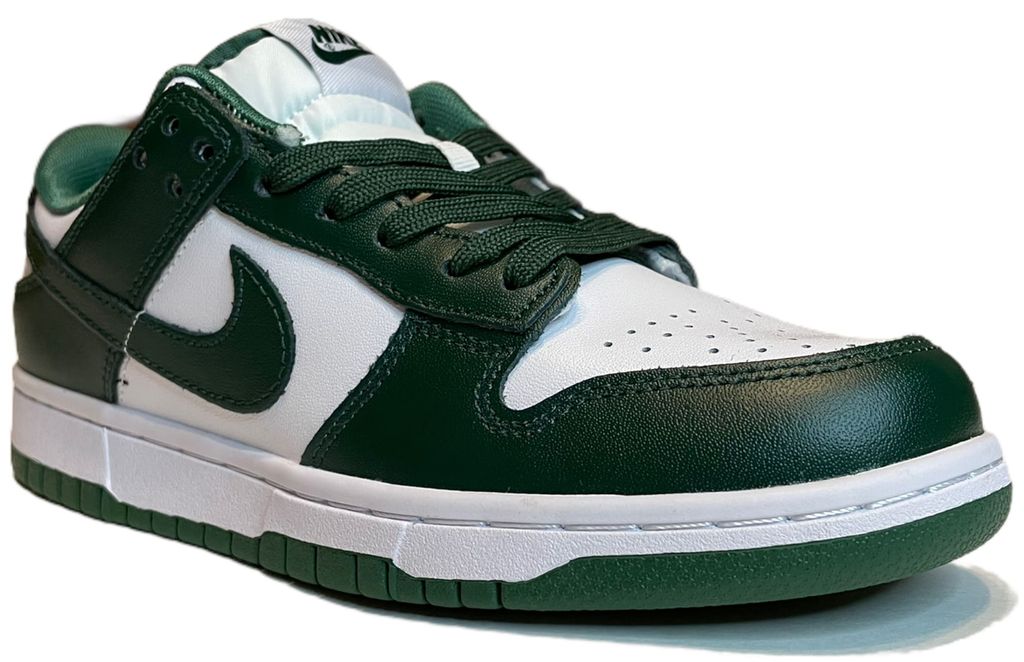 Nike SB Dunk Low Michigan State - элегантная версия данков в фирменных цветах университета штата Мичиган. Классическое сочетание зеленого и белого создает благородный образ, а надежная платформа SB обеспечивает превосходные ощущения при катании.