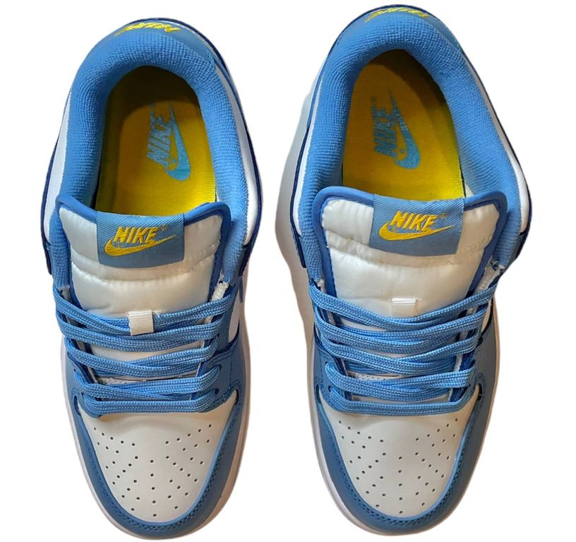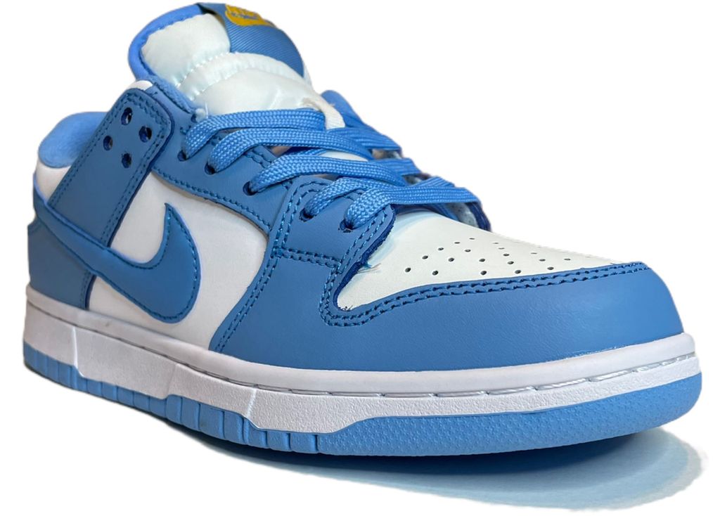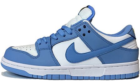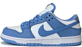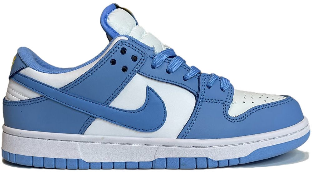 Классический SB Dunk Low в расцветке University of North Carolina. Сочетание белой кожи с голубыми элементами. Культовый силуэт с университетским наследием.