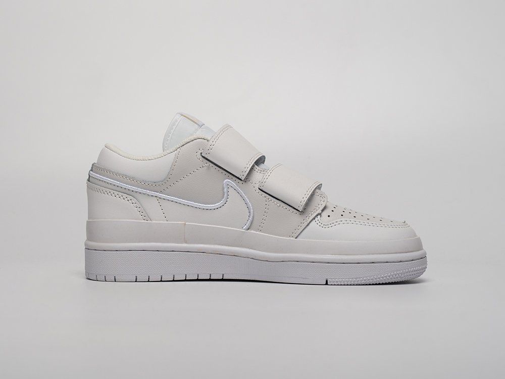 Белые Nike Air Jordan 1 Low Double Strap получили низкий силуэт и застёжки на липучке вместо шнурков. Такая деталь делает кроссовки практичными, сохраняя узнаваемый стиль линейки Jordan