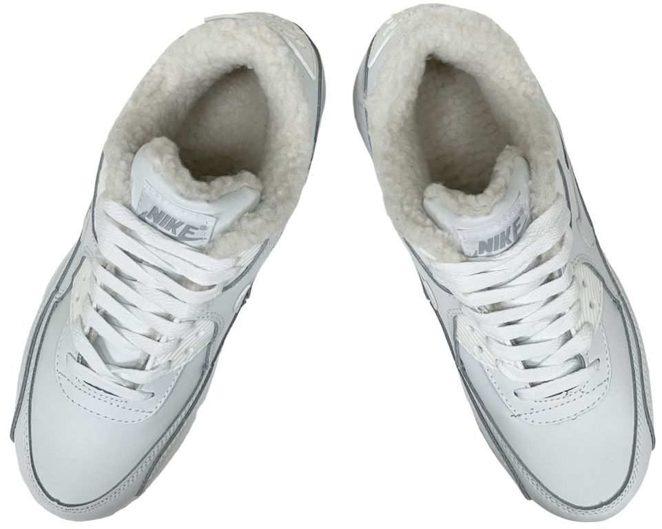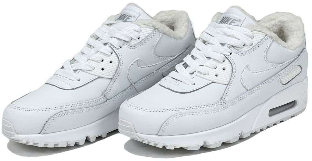 Nike Air Max 90 Essential Triple White с мехом - зимняя версия культовой модели в белом цвете. Меховая подкладка и система амортизации Max Air обеспечивают тепло и комфорт, сохраняя классический силуэт для холодного сезона.