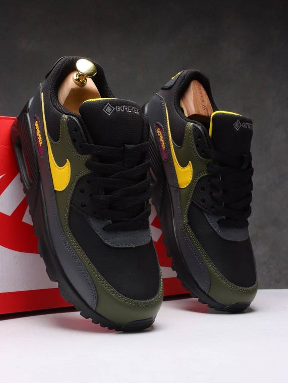 Желто-хаки кроссовки с технологией Gore-Tex для защиты от дождя и слякоти. Знаменитый силуэт Air Max 90 дополнен функциональными материалами для непогоды.