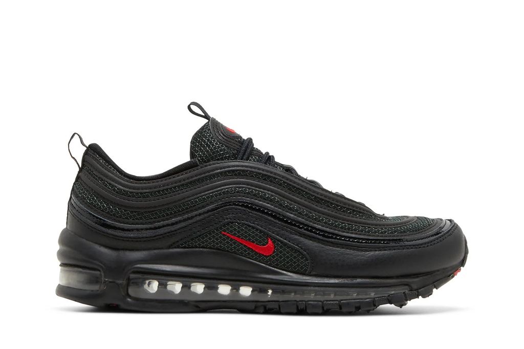Nike Air Max 97 "Black University Red" — это культовая модель, выпущенная 11 августа 2022 года в честь 25-летия Air Max 97. Кроссовки выполнены из черной сетки и кожи с волнообразными накладками, вдохновленными японскими скоростными поездами. Яркие акценты красного цвета присутствуют на мини-Swoosh и логотипе "Air Max" на пятке, а светоотражающие элементы добавляют дополнительный стиль. Полноразмерная воздушная подушка обеспечивает комфорт при каждом шаге.