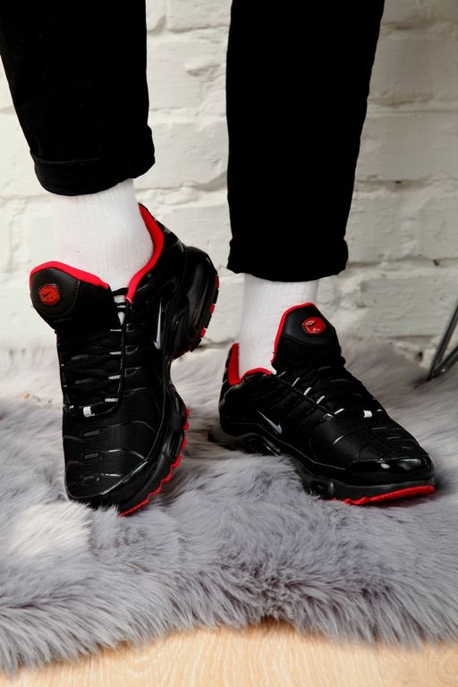 Nike Air Max TN Plus Black Red - мощный силуэт с контрастным сочетанием черного и красного. Система Tuned Air и агрессивный дизайн создают динамичный образ с максимальным комфортом.