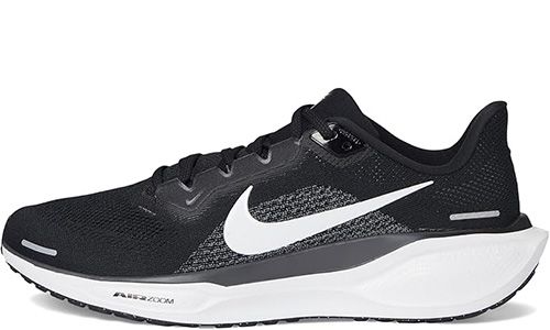 Nike Air Zoom Pegasus 41 Black оформлены в классическом чёрном цвете с верхом из лёгкой дышащей сетки и минималистичными синтетическими вставками для поддержки. Подошва с пеной ReactX и двумя вставками Zoom Air обеспечивает мягкую и отзывчивую амортизацию, подходящую для ежедневных пробежек и динамичного ритма дня