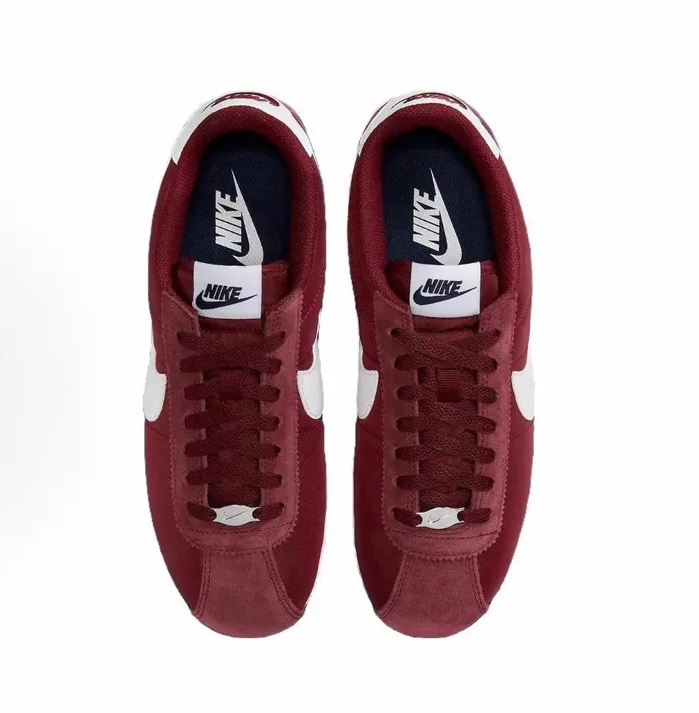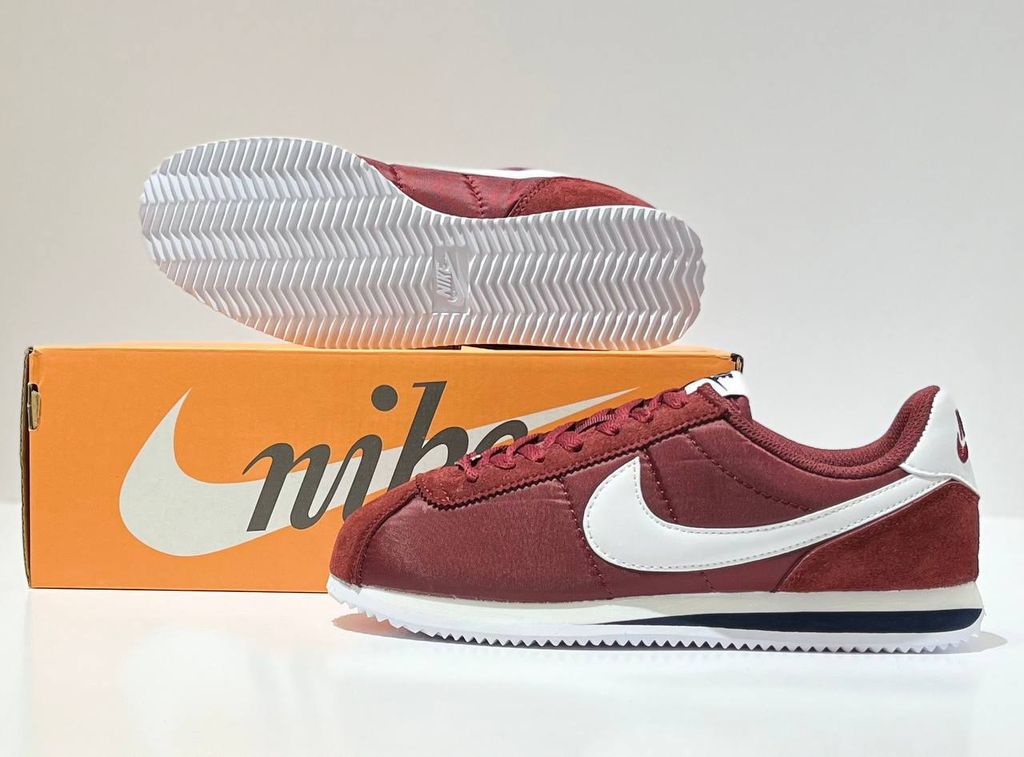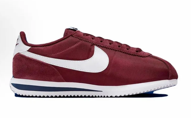 Nike Cortez Team Red привлекает внимание глубоким бордовым оттенком верха, создавая стильный и элегантный образ для повседневного использования. Классический силуэт дополнен контрастной белой подошвой и фирменным "свушем" на боковой части, а мягкая кожаная конструкция обеспечивает долговечность и естественную посадку по ноге для комфорта на протяжении всего дня.