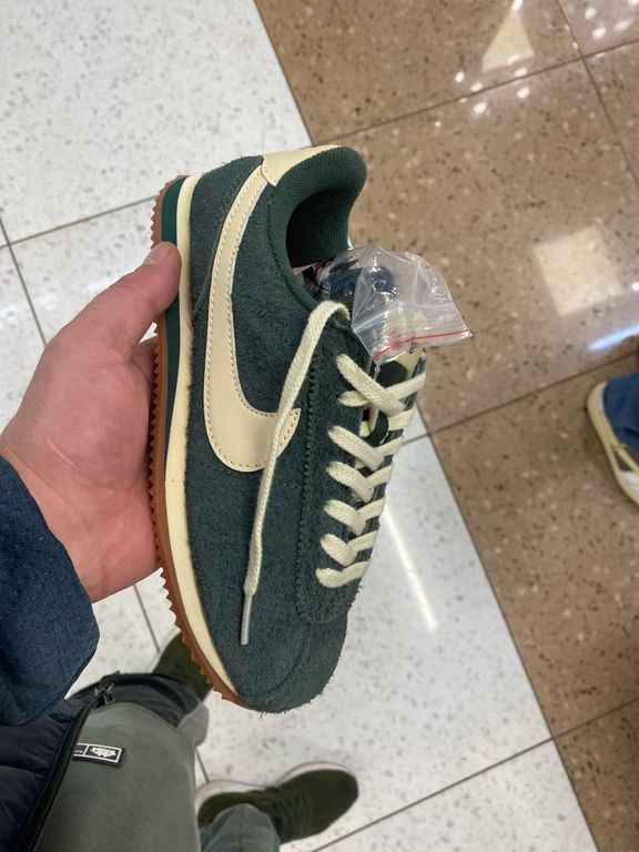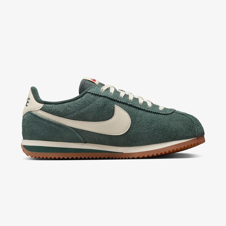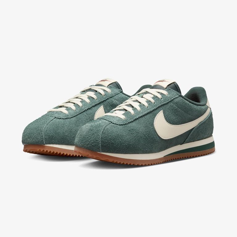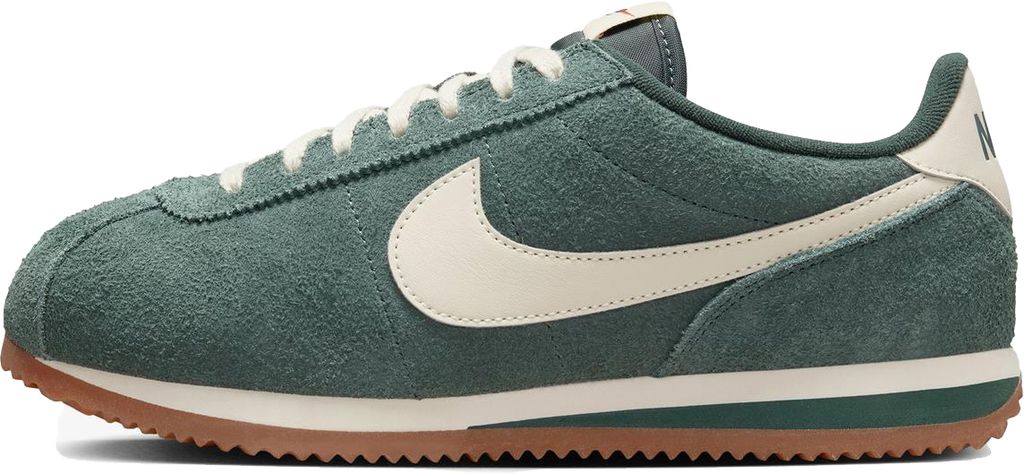 Nike Cortez Vintage Suede в зелёном цвете — переиздание культовой модели 1972 года с акцентом на винтажный стиль. Модель выполнена из текстурированной замши зелёного оттенка с белым кожаным Swoosh и коричневой подошвой, придающей ретро-шарм.