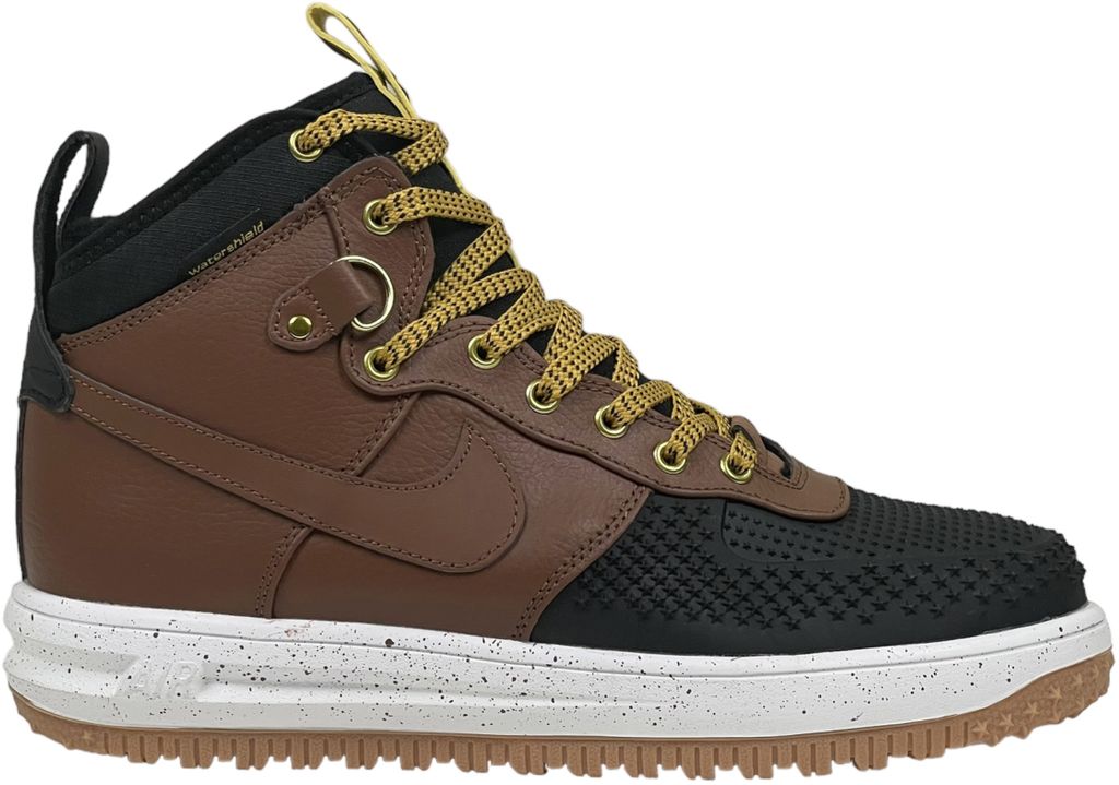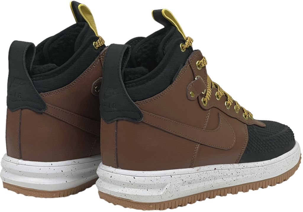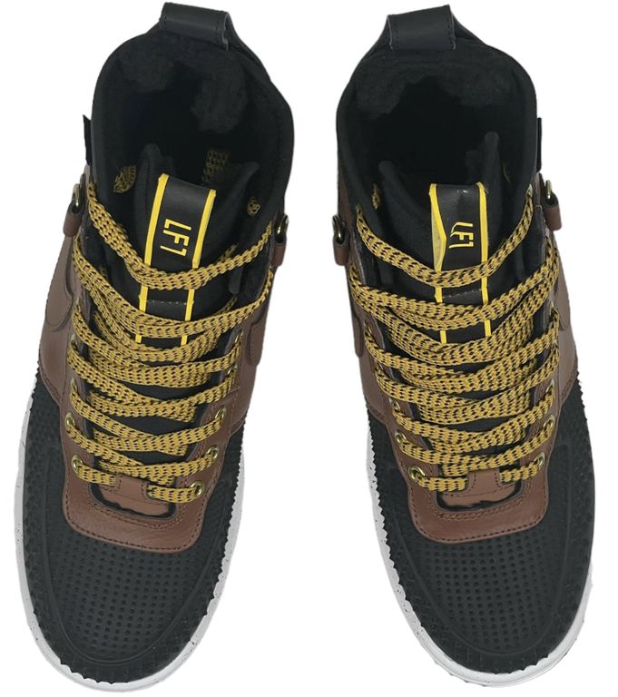 Nike Lunar Force 1 Duckboot Black Deep Wood с мехом - утепленная версия с комбинацией черного и темно-коричневого. Водостойкий верх, меховая подкладка и система Lunarlon гарантируют защиту в холодную погоду.