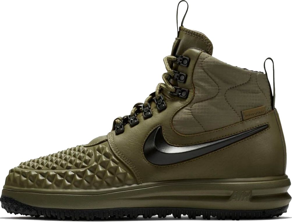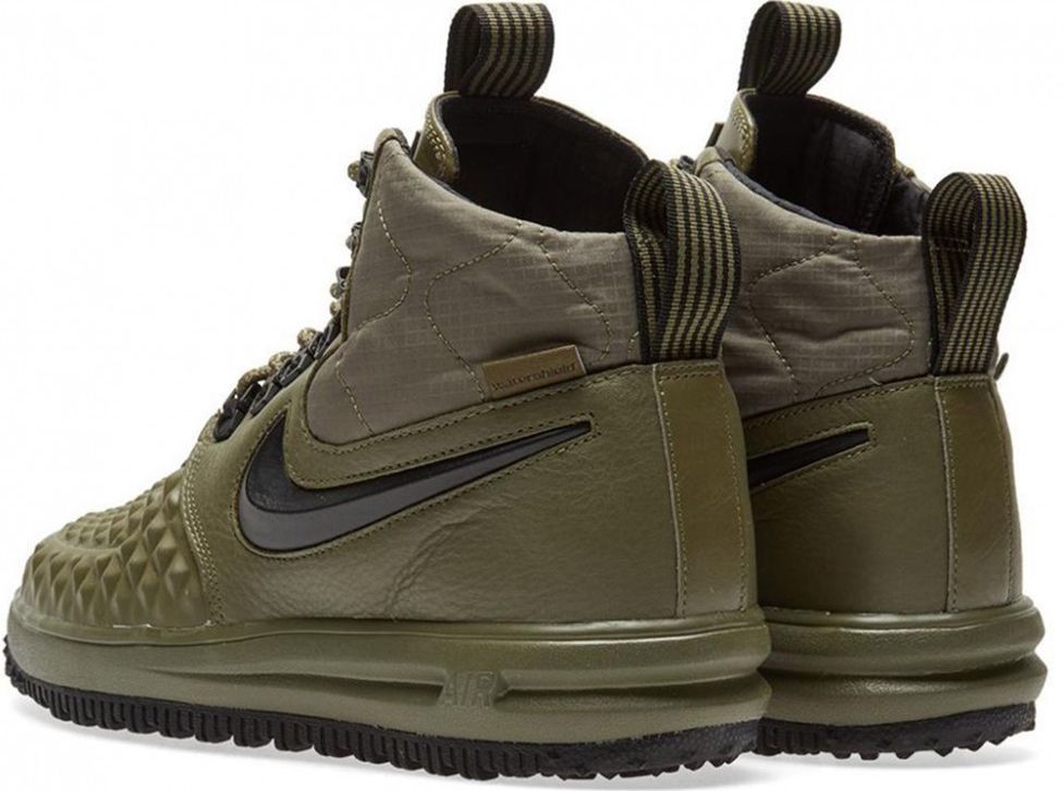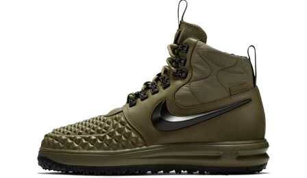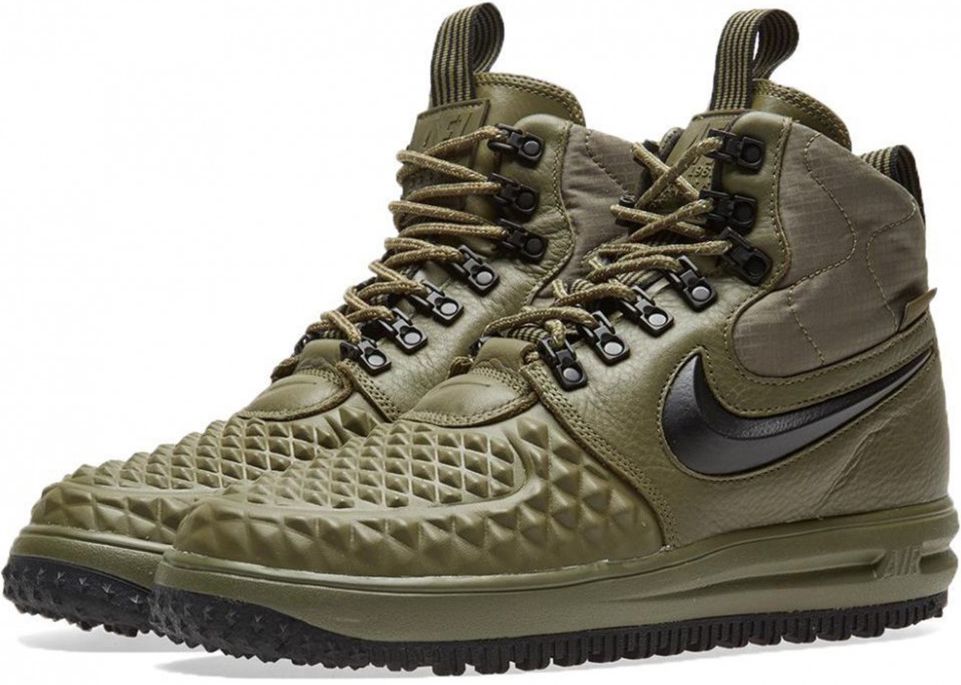Nike Lunar Force 1 Duckboot Dark Green - надежная версия с темно-зеленым верхом. Усиленная защита от влаги и технология Lunarlon создают практичный образ для сложных погодных условий.