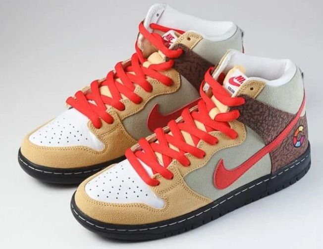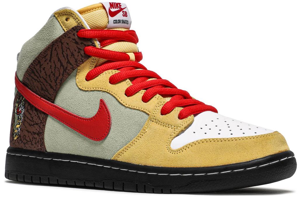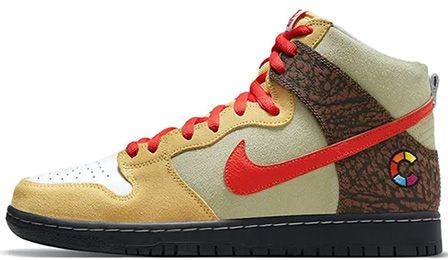 Nike SB Dunk High Color Skates Kebab and Destroy - креативная коллаборация, вдохновленная культурой уличной еды. Верх напоминает текстуры и цвета любимого фастфуда, а специальные детали, включая принты шаурмы, создают аппетитный образ на классической высокой платформе SB.