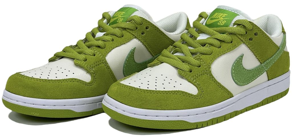 Nike SB Dunk Low Green Apple - сочная интерпретация классических данков в ярко-зеленом цвете свежего яблока. Контрастные детали и насыщенный оттенок создают энергичный образ, а надежная платформа SB обеспечивает отличную поддержку при катании.