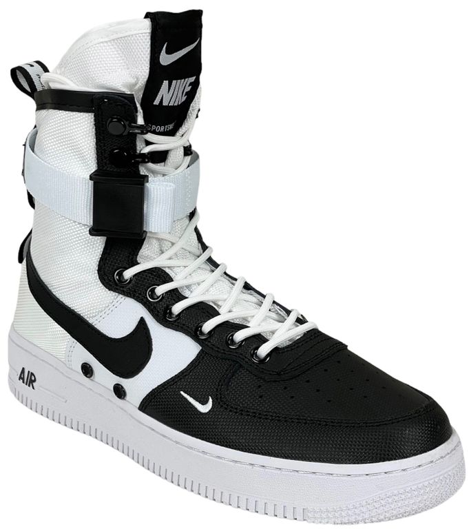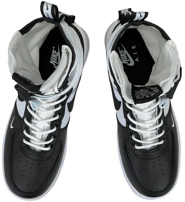 Nike SF Air Force 1 High Panda - креативная версия с контрастным черно-белым дизайном. Высокий профиль с военными элементами и двухцветное исполнение создают уникальный стритвир-образ, сохраняя классический комфорт Air Force 1.