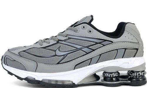 Nike Supreme x Shox Ride 2 Grey White — стильная коллаборация с фирменной амортизацией Shox. Модель выполнена в сдержанных серо-белых тонах с акцентом на бренд Supreme и технологичные детали для комфорта и поддержки стопы