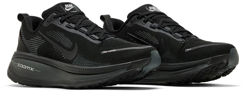 Nike Vomero 18 Triple Black выполнены в однотонном чёрном цвете с верхом из дышащей сетки и поддерживающими синтетическими панелями. Амортизация Zoom Air в сочетании с пеной Cushlon обеспечивает мягкий отклик и стабильность, делая модель комфортной для ежедневного бега и длительной ходьбы